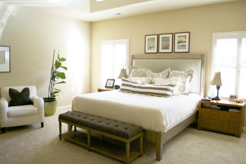 Consider, if you have a standard size bed with a pre-made duvet cover as a base, custom pillows and shams can give you the special look that you want. A newly upholstered bench or settee at the foot of your bed provides an excellent place to put extra pillows or bedding at night.